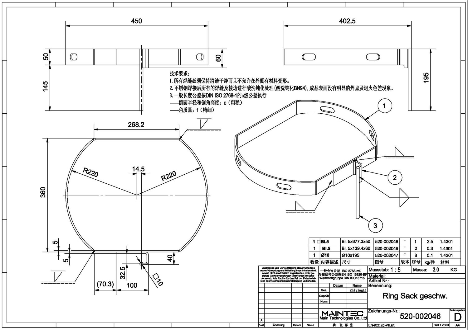询盘信息询单号2404CY0006来自国家德国品名黑色环袋需求数量600报价截止日期2024/5/7图纸号520-002046工艺冲压+焊接材料见图纸生产周期(周)付款方式预付款,验收合格后支付尾款。询盘附件下载6384957134441391417063360.pdf报价单下载请在报价限定期内以附件形式将报价单发送至info@deguocheng.com6384957135730591093273416.xlsx