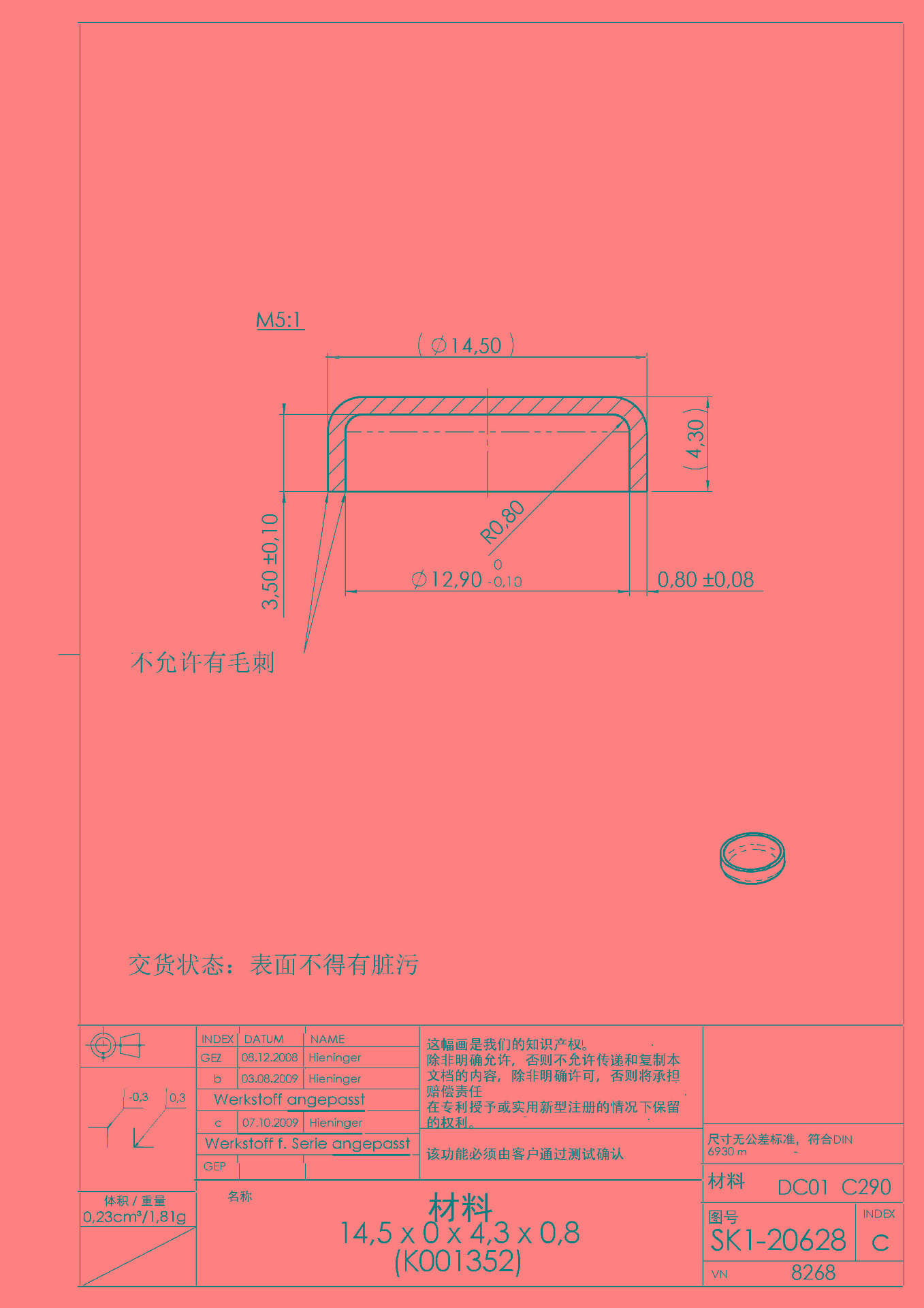 询盘信息询单号2405CY0002来自国家德国品名堵盖需求数量1000报价截止日期2024/5/17图纸号SK1-20628工艺冲压材料见图纸生产周期(周)付款方式预付款,验收合格后支付尾款。询盘附件下载6385067440379681529959443.pdf报价单下载请在报价限定期内以附件形式将报价单发送至info@deguocheng.com6385067442721054998941578.xlsx