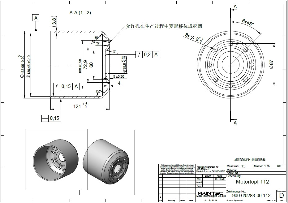 询盘信息询单号2405CY0028来自国家德国品名发动机壳需求数量2000报价截止日期2024/5/25图纸号900.6/0283-00.112工艺冲压材料见图纸生产周期(周)付款方式预付款,验收合格后支付尾款。询盘附件下载6385146547672961858174757.pdf报价单下载请在报价限定期内以附件形式将报价单发送至info@deguocheng.com6385146549230480192248657.xlsx