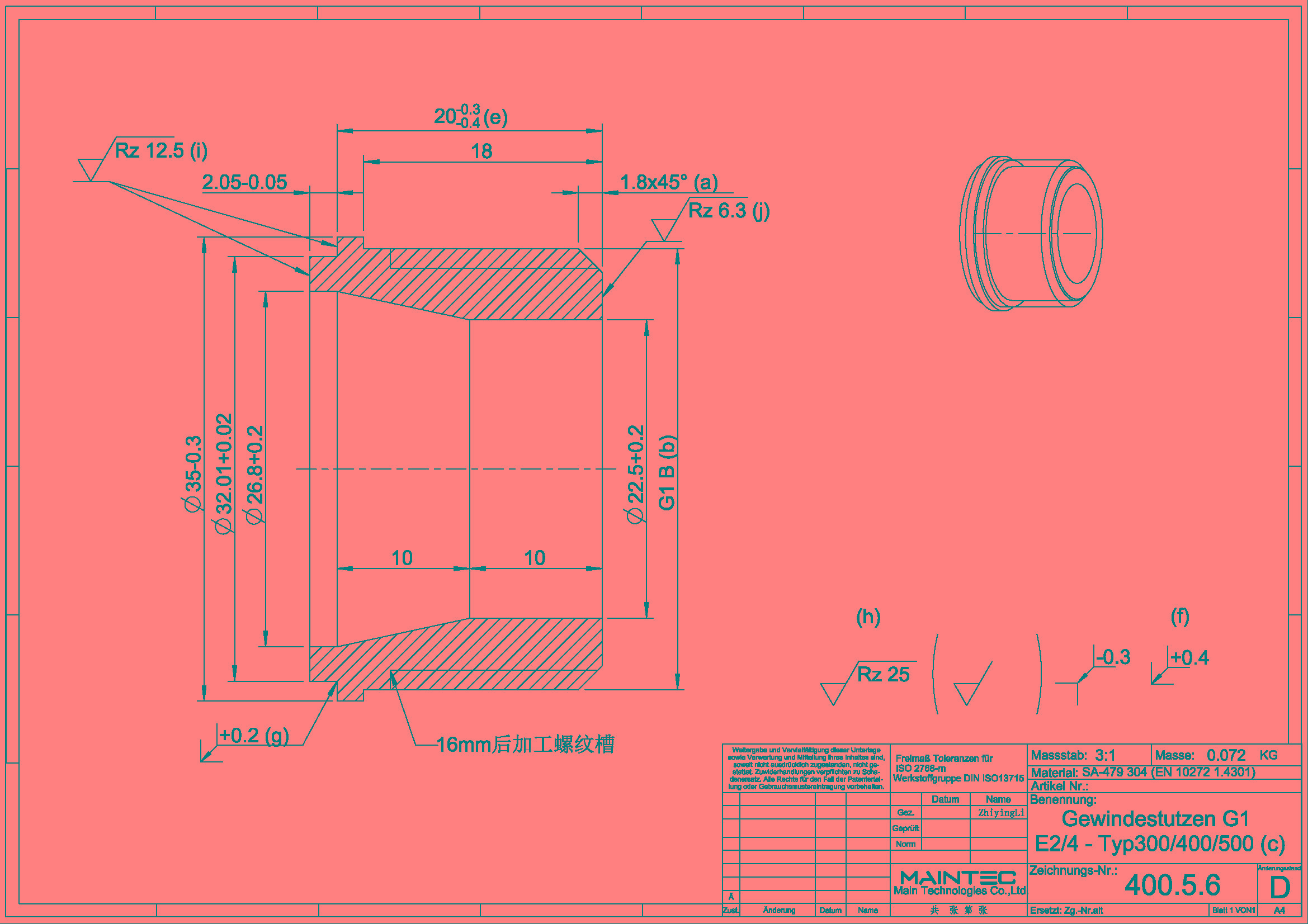 询盘信息询单号2404JG0001来自国家德国品名螺纹夹具G1需求数量500报价截止日期2024/5/6图纸号400.5.6工艺机械加工材料见图纸生产周期(周)付款方式预付款,验收合格后支付尾款。询盘附件下载6384946828189705525771071.pdf报价单下载请在报价限定期内以附件形式将报价单发送至info@deguocheng.com6384946829890055719468754.xlsx