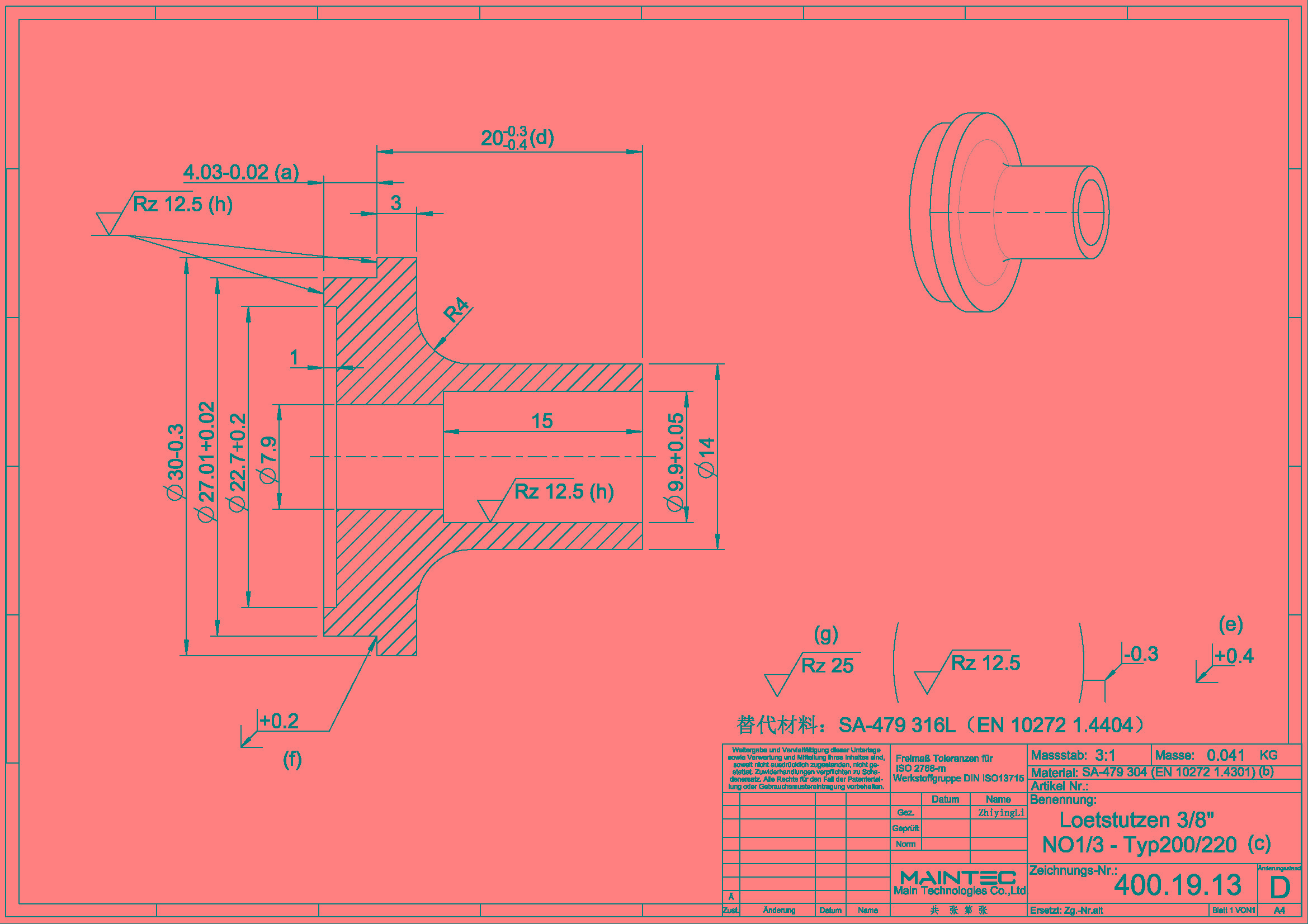 询盘信息询单号2404JG0003来自国家德国品名焊接套管 3/8"需求数量500报价截止日期2024/5/6图纸号400.19.13工艺机械加工材料见图纸生产周期(周)付款方式预付款,验收合格后支付尾款。询盘附件下载6384947379921487007446110.pdf报价单下载请在报价限定期内以附件形式将报价单发送至info@deguocheng.com6384947384143492364977052.xlsx