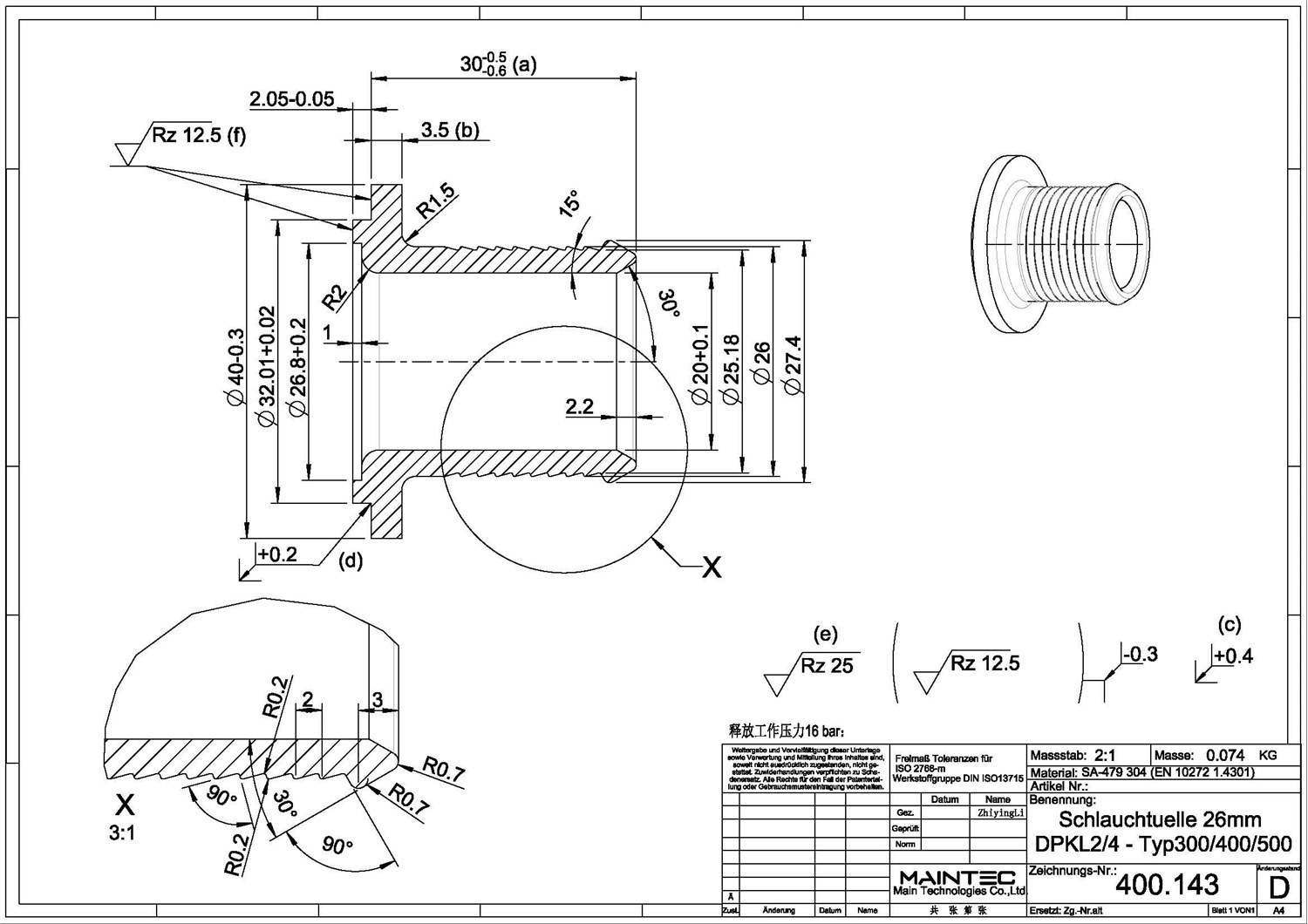 询盘信息询单号2404JG0005来自国家德国品名26mm软管需求数量1000报价截止日期2024/5/6图纸号400.143工艺机械加工材料见图纸生产周期(周)付款方式预付款,验收合格后支付尾款。询盘附件下载6384947589637000958304450.pdf报价单下载请在报价限定期内以附件形式将报价单发送至info@deguocheng.com6384947593553826217534028.xlsx
