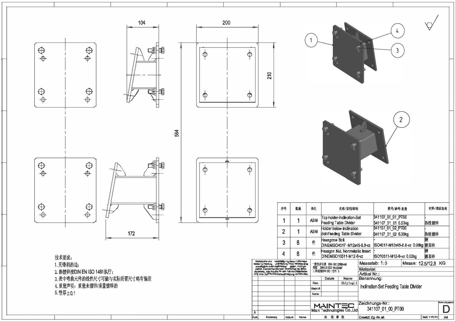 询盘信息询单号2404JG0012来自国家德国品名倾斜进料台挡板需求数量500报价截止日期2024/5/8图纸号341107_01_00_PT00工艺机加工+焊接材料见图纸生产周期(周)付款方式预付款,验收合格后支付尾款。询盘附件下载6384965137673254663158495.pdf报价单下载请在报价限定期内以附件形式将报价单发送至info@deguocheng.com6384965138982043059654164.xlsx