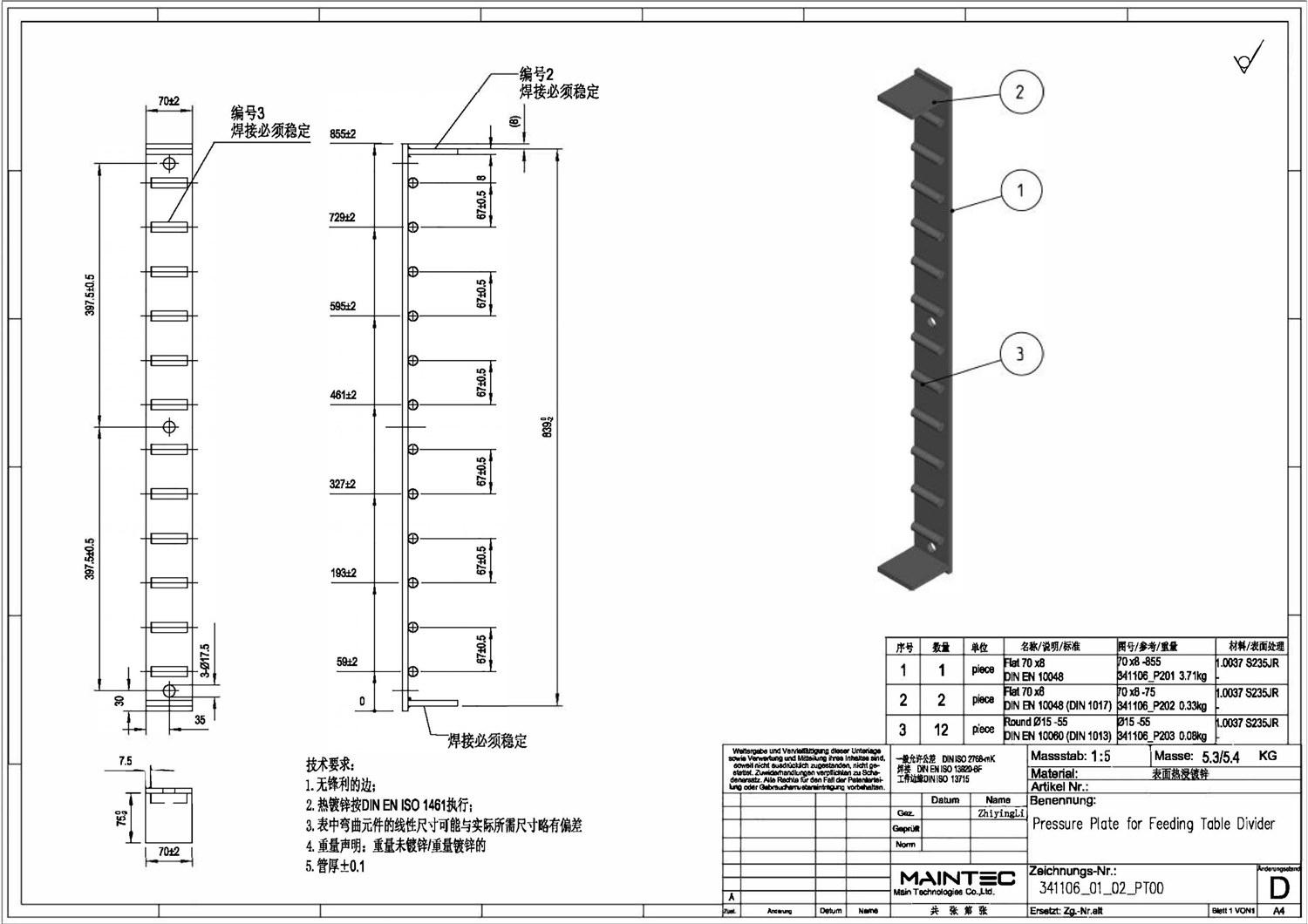 询盘信息询单号2404JG0017来自国家德国品名送料台分压盘需求数量500报价截止日期2024/5/8图纸号341106_01_02_PT00工艺机加工+焊接材料见图纸生产周期(周)付款方式预付款,验收合格后支付尾款。询盘附件下载6384965690461719414655436.pdf报价单下载请在报价限定期内以附件形式将报价单发送至info@deguocheng.com6384965692608064975113803.xlsx