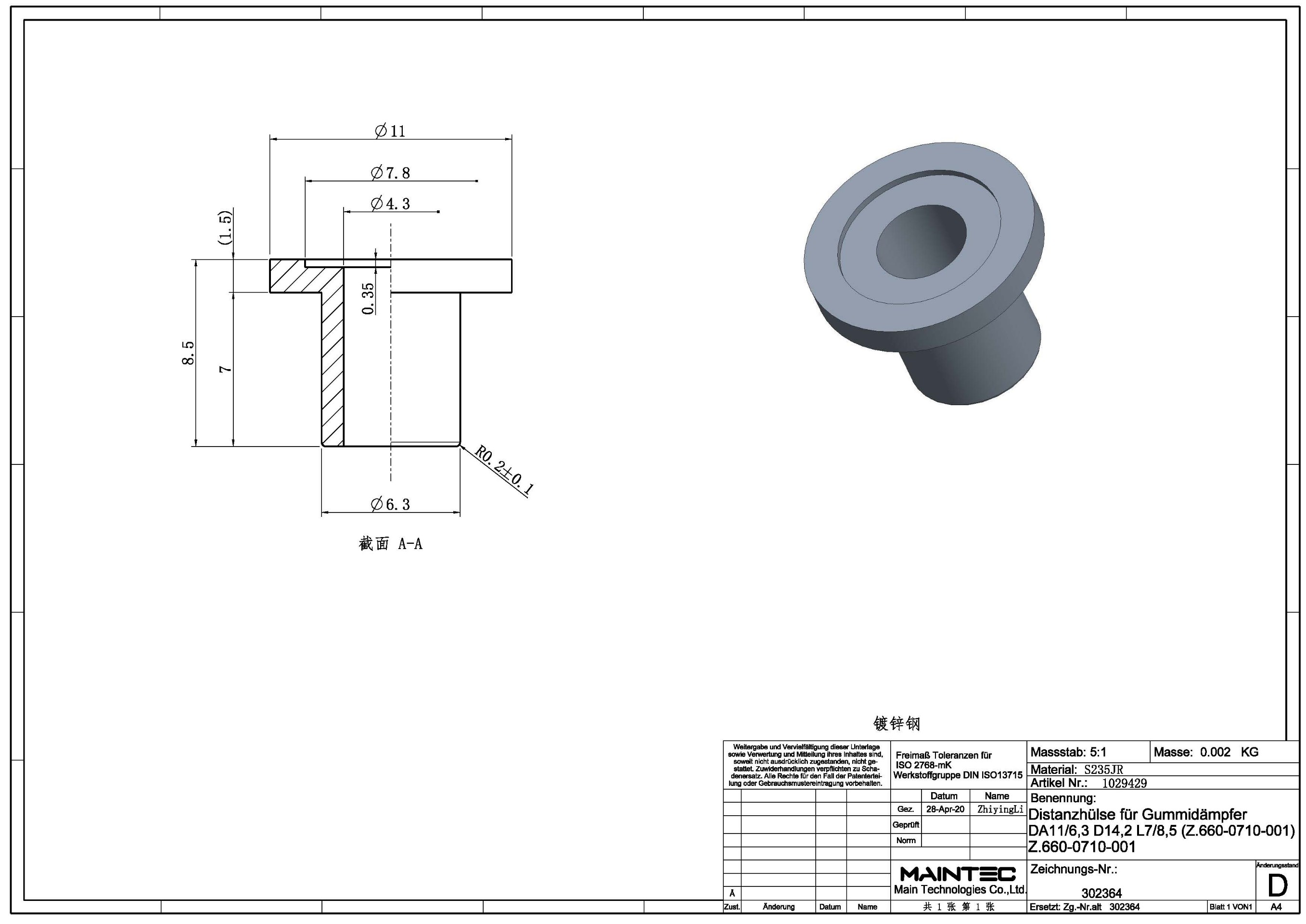 询盘信息询单号2404JG0018来自国家德国品名橡胶减震器的隔离套需求数量1500报价截止日期2024/5/8图纸号Z.660-0710-001工艺机加工材料见图纸生产周期(周)付款方式预付款,验收合格后支付尾款。询盘附件下载6384965725574836409832016.pdf报价单下载请在报价限定期内以附件形式将报价单发送至info@deguocheng.com6384965727903760778876532.xlsx