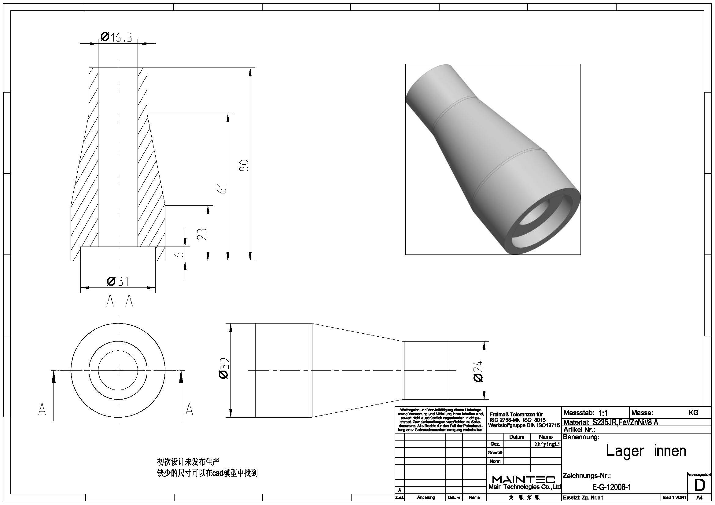 询盘信息询单号2405JG0002来自国家德国品名轴承座需求数量800报价截止日期2024/5/17图纸号E-G-12006-1工艺机加工材料见图纸生产周期(周)付款方式预付款,验收合格后支付尾款。询盘附件下载6385067706866528958162546.pdf报价单下载请在报价限定期内以附件形式将报价单发送至info@deguocheng.com6385067711494868087158067.xlsx