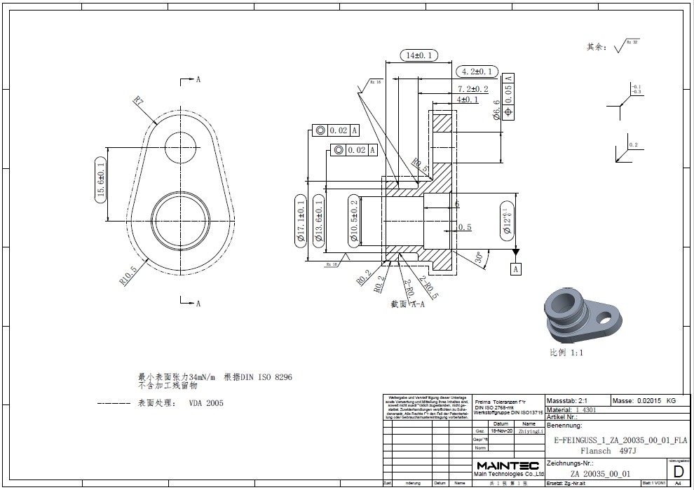 询盘信息询单号2405JG0016来自国家德国品名连接件需求数量3000报价截止日期2024/5/18图纸号ZA 20035_00_01工艺机加工材料见图纸生产周期(周)付款方式预付款,验收合格后支付尾款。询盘附件下载6385078610184648075400693.pdf报价单下载请在报价限定期内以附件形式将报价单发送至info@deguocheng.com6385078611562532031289987.xlsx