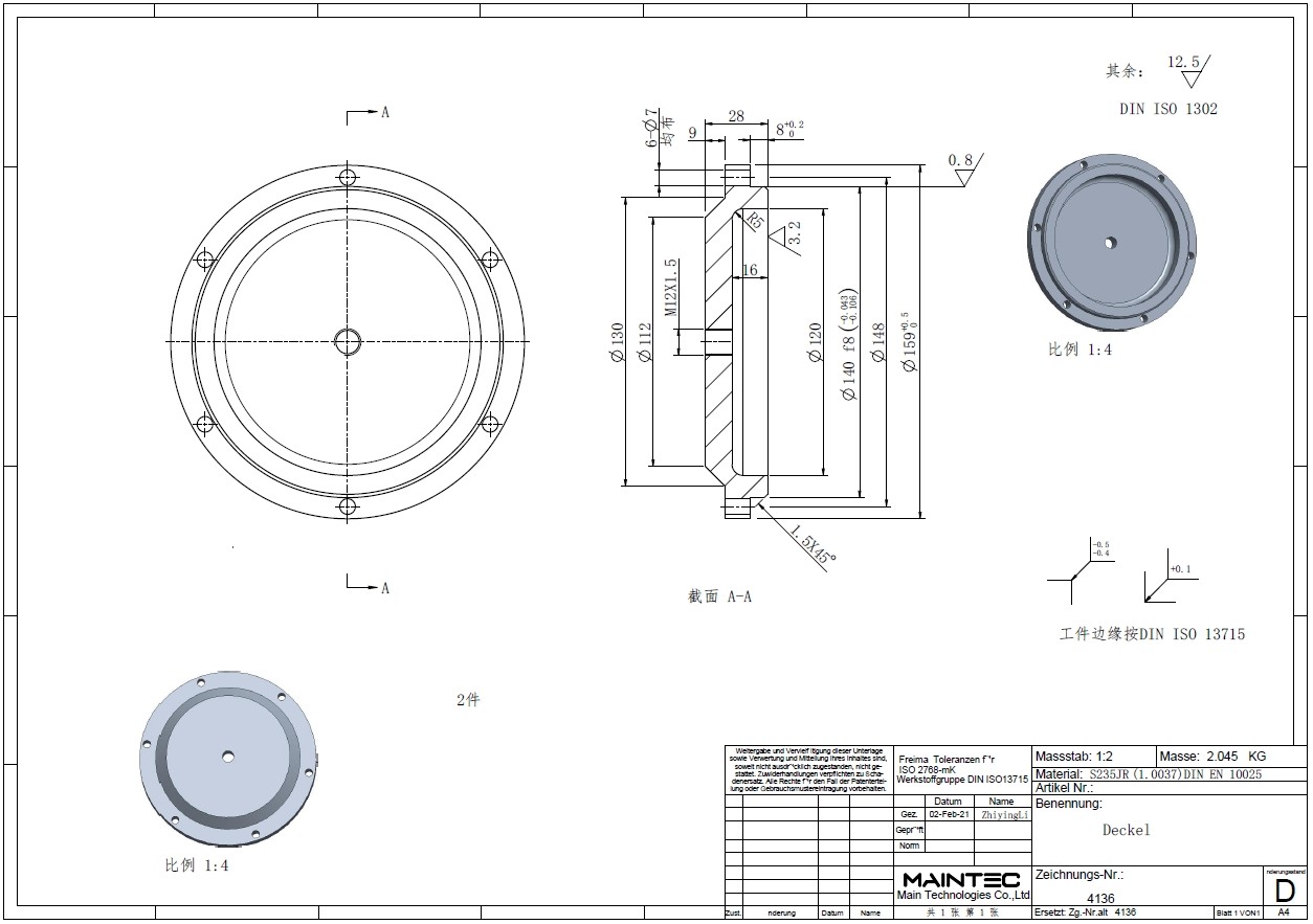 询盘信息询单号2405JG0040来自国家德国品名外壳需求数量2000报价截止日期2024/5/24图纸号4136工艺机加工材料见图纸生产周期(周)付款方式预付款,验收合格后支付尾款。询盘附件下载6385128456707070717080097.pdf报价单下载请在报价限定期内以附件形式将报价单发送至info@deguocheng.com6385128458552718185610830.xlsx