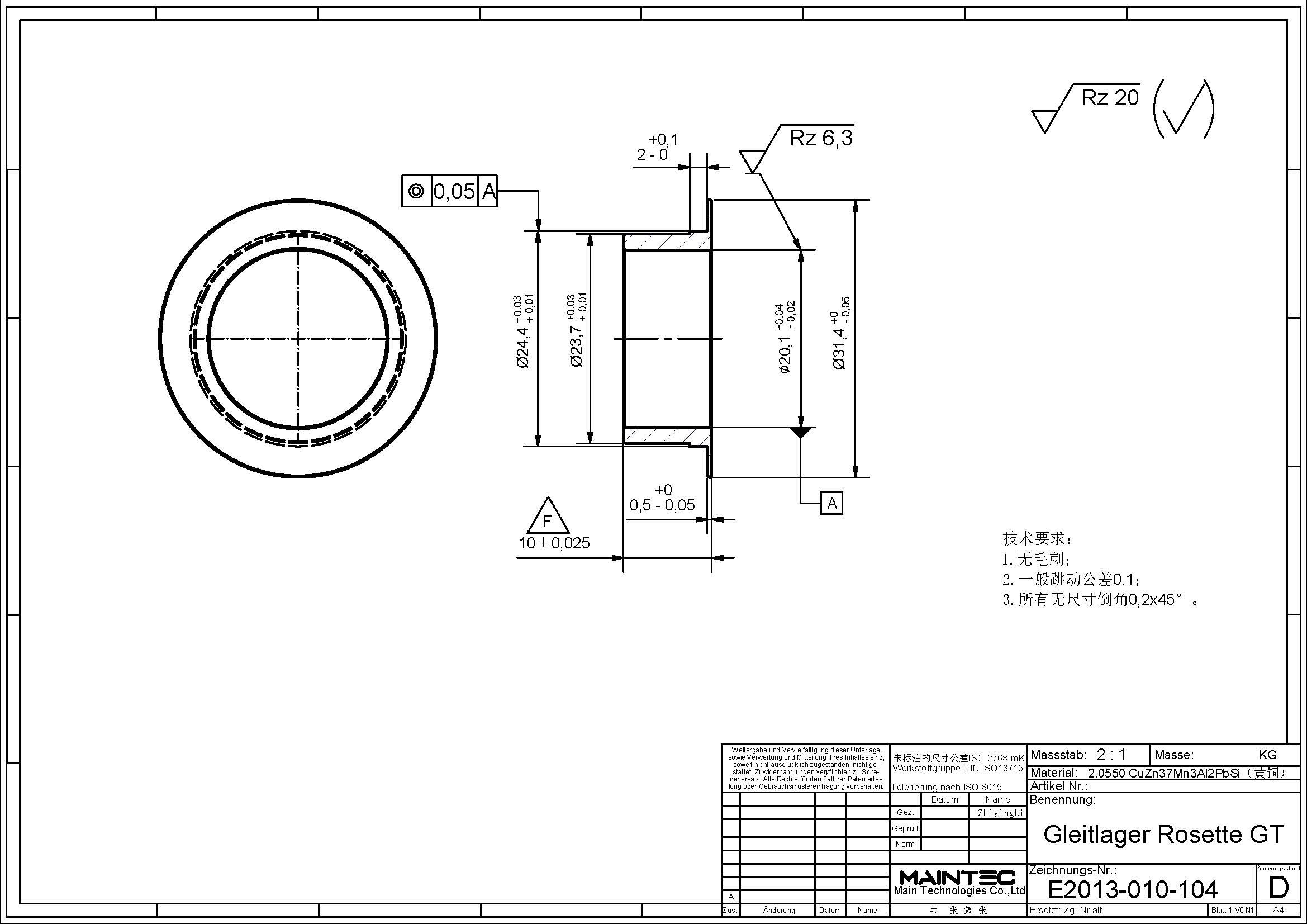 询盘信息询单号2405JG0045来自国家德国品名 GT滑动轴承需求数量2000报价截止日期2024/5/24图纸号E2013-010-104工艺机加工材料见图纸生产周期(周)付款方式预付款,验收合格后支付尾款。询盘附件下载6385138660587598742535106.pdf报价单下载请在报价限定期内以附件形式将报价单发送至info@deguocheng.com6385138661964026814195154.xlsx