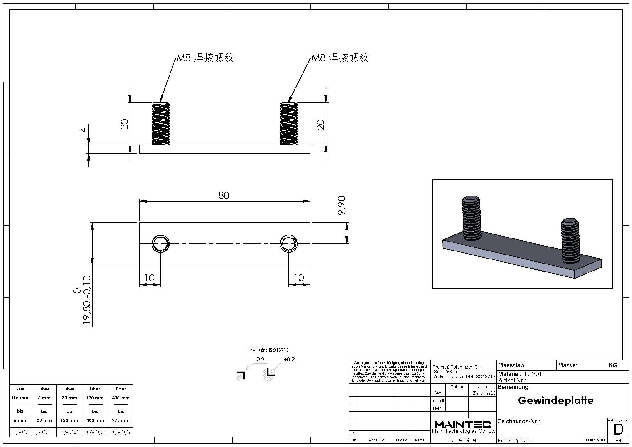 询盘信息询单号2405JG0053来自国家德国品名螺纹板需求数量1000报价截止日期2024/5/30图纸号工艺机加工材料见图纸生产周期(周)付款方式预付款,验收合格后支付尾款。询盘附件下载6385179957051877435686432.pdf报价单下载请在报价限定期内以附件形式将报价单发送至info@deguocheng.com6385179958897910898515337.xlsx